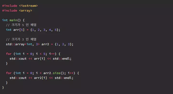 위 방식은 C++ 에서 추가된 std::array 를 사용해서 크기가 3 이고