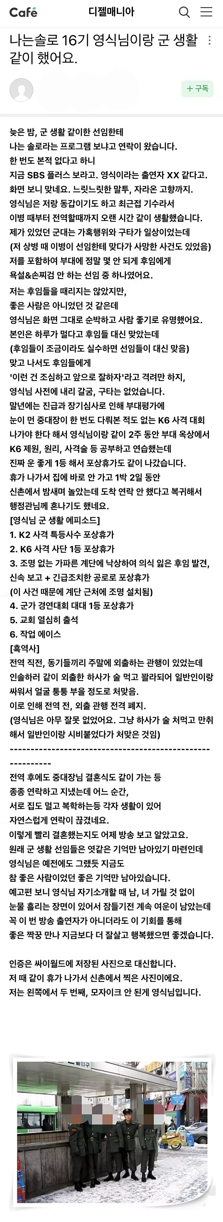전역 후에도 중대장님 결혼식도 같이 가는 등
