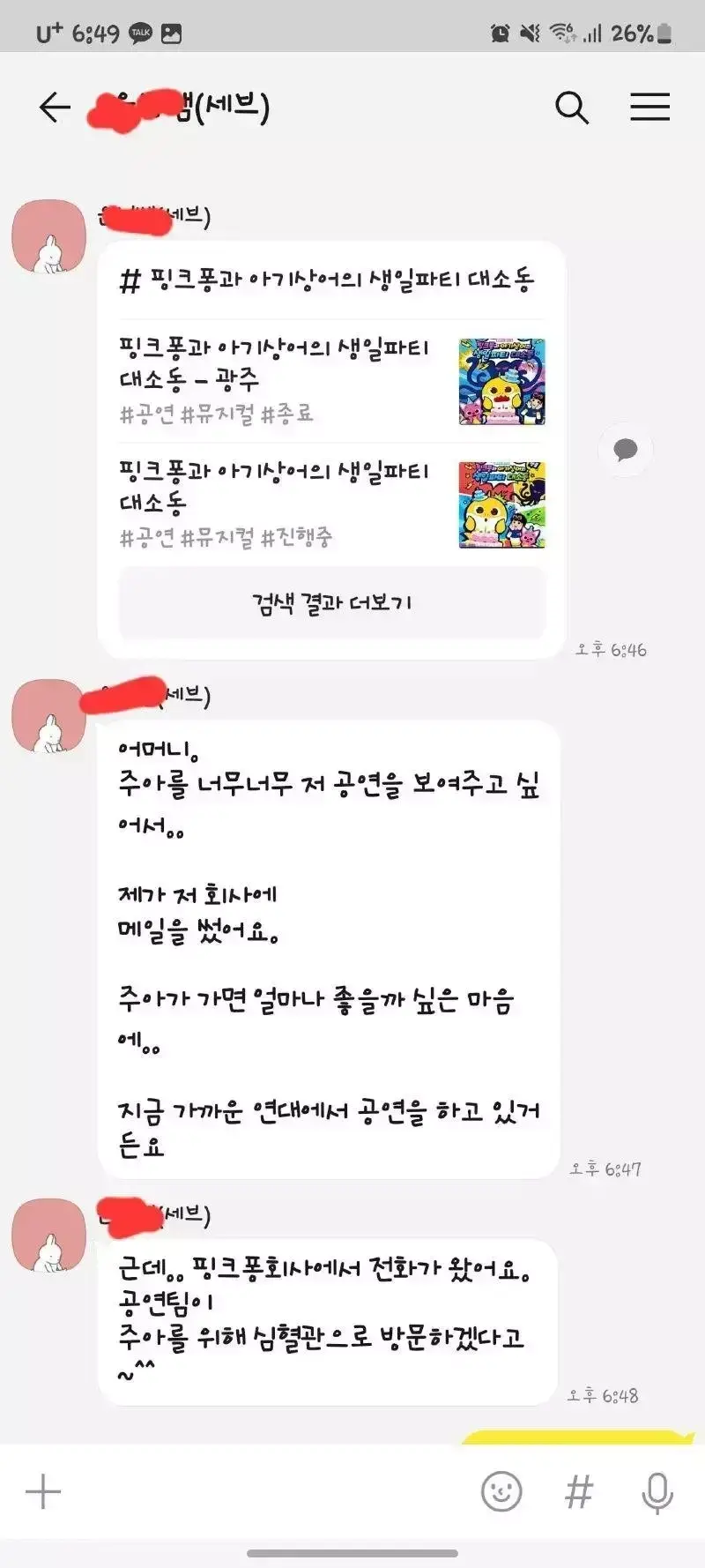 밖에 나갈 수 없는 저희 아기를 위해서 직접 와주셔서 공연과