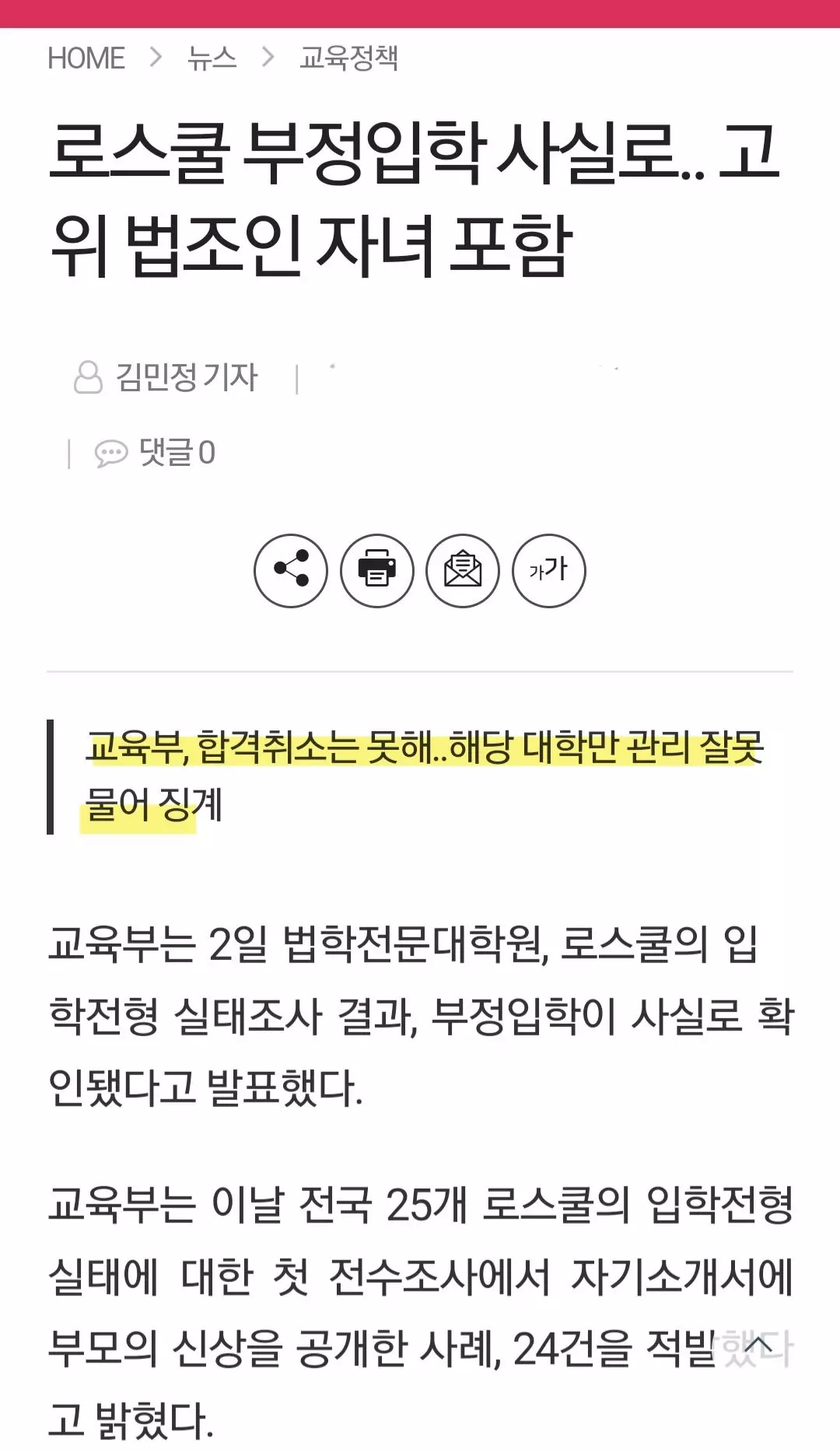 교육부에서 부정입학한 사람들 합격취소는 안 하고
