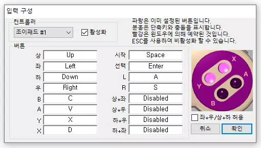 키 입력 구성은 원하시는 데로 설정하시면 됩니다.