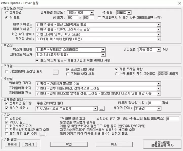 설정값은 참고용으로 확인하시면 되겠습니다.