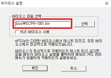 일반적으로 제일 많이 사용되는 파일은 SCPH1001.BIN 파일을 사용합니다.