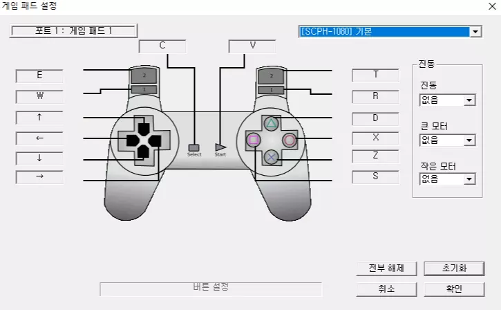 게임 패드의 키설정의 경우 특별하게 변경할 사항은 없었습니다.