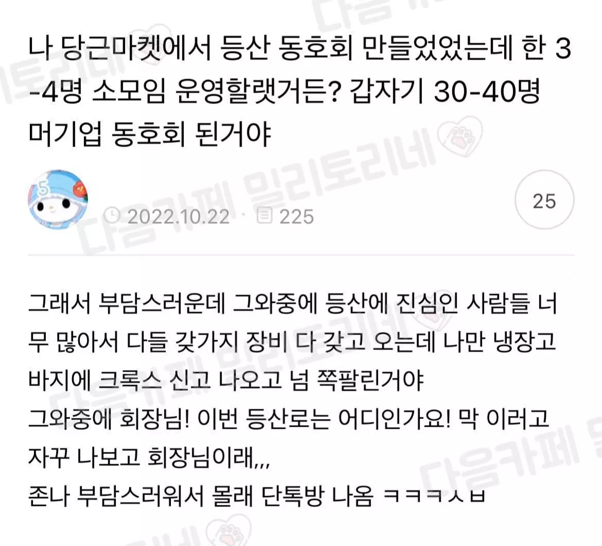 나 당근마켓에서 등산 동호회 만들었었는데