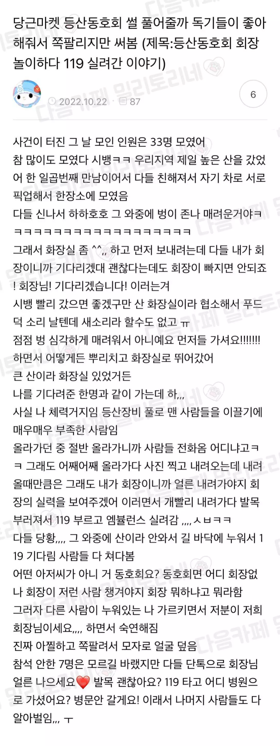 등산 동호회 회장 놀이하다 119 실려간 이야기