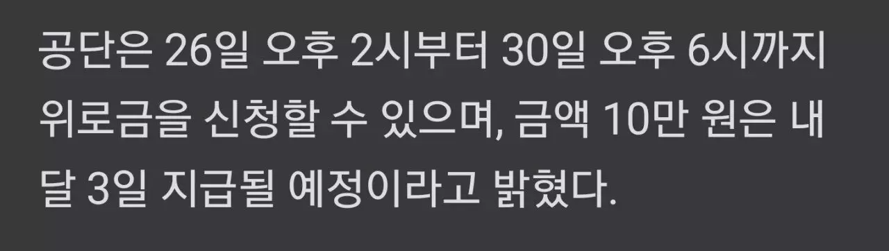 공단 측은 1인당 10만원을 지급하겠다는 보상안을 마련해 공지했으나,