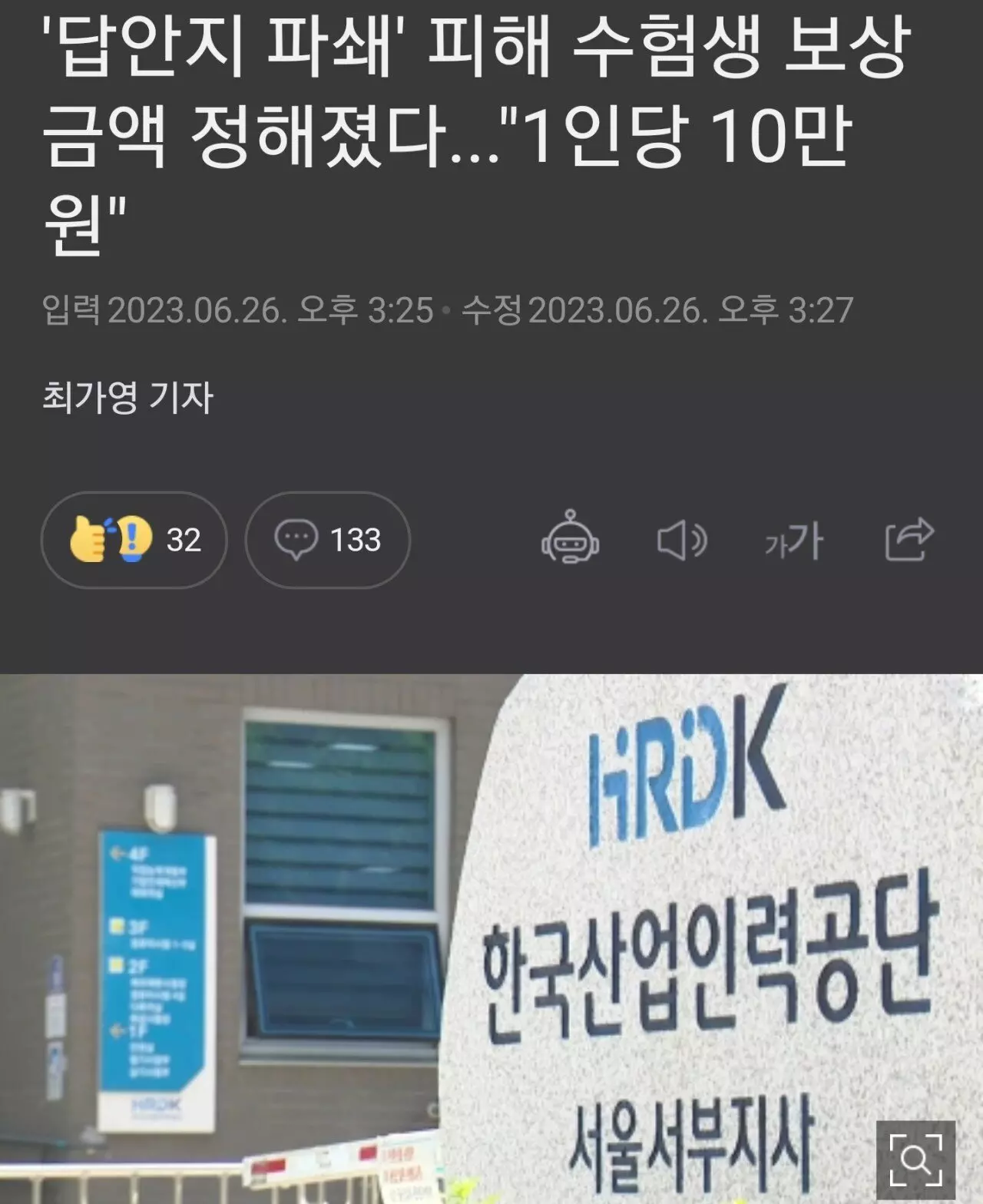 수험생들에게 각 150만원을 지급하라는 결정을 내렸다.