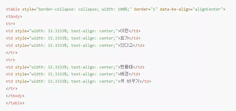 위의 표의 기본 Html은 이런 모습입니다.