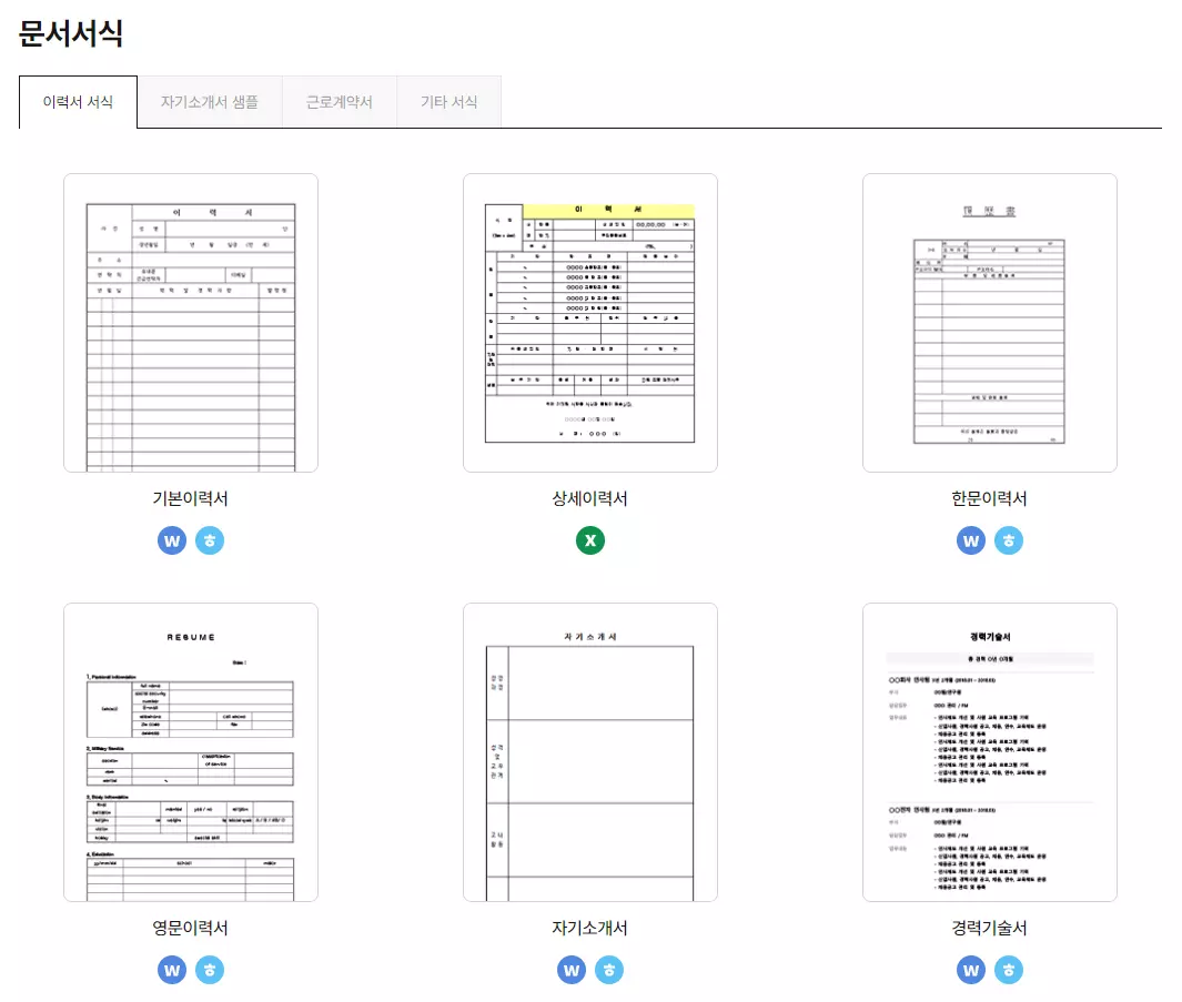 카테고리별로 다양한 문서를 제공하고 있으니