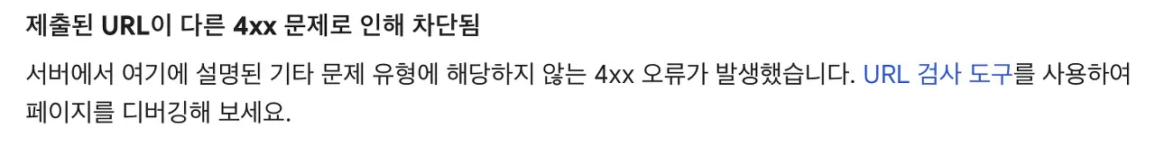 "다른 4xx 문제로 인해 차단됨"이라는 오류를 확인할 수 있습니다.