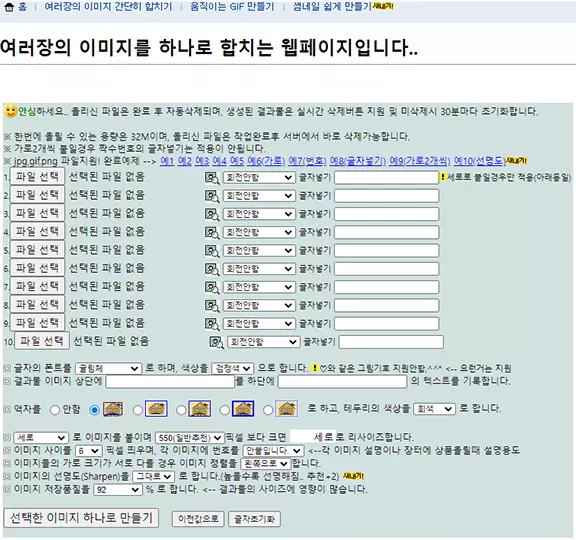 웹에서 간단하게 여러장의 이미지를 하나로 합치는 웹페이지 입니다.
